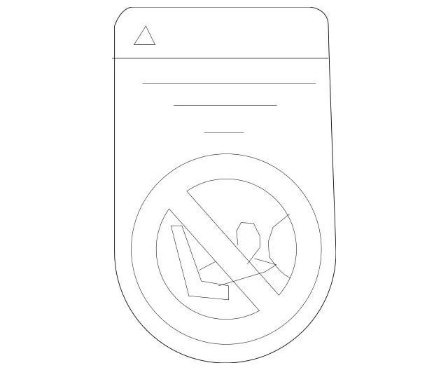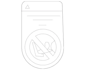 Note on front passenger airbag on insttrument panel. English. Note on front passenger airbag to instrument panel. Co-driver's air bag. Notice for child restraint system. Passenger side cover.